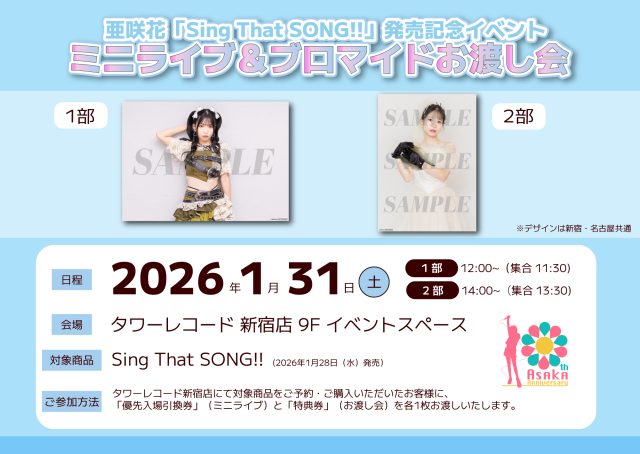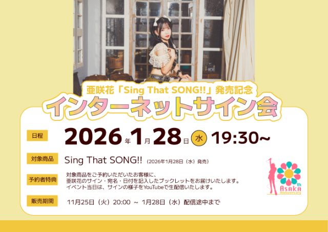 亜咲花初のカバーアルバム『Sing That SONG!!』の発売を記念してインターネットサイン会を開催します。